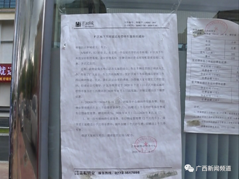 不过,记者在岗亭处看到了一份物业张贴的通知,说从今年的8月1日起,地下车库开始实行有偿服务。