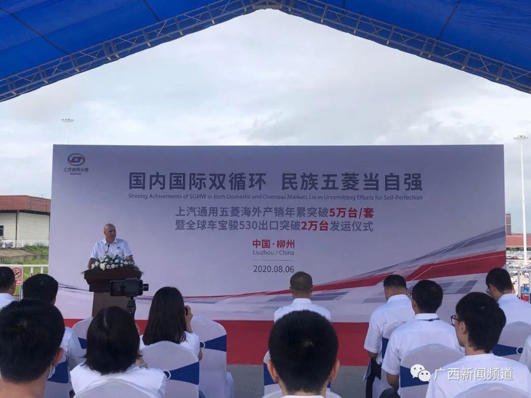 今天上午,上汽通用五菱海外产销年累突破5万台/套暨全球车宝骏530出口突破2万台发运仪式在安吉物流柳东运作中心举行。