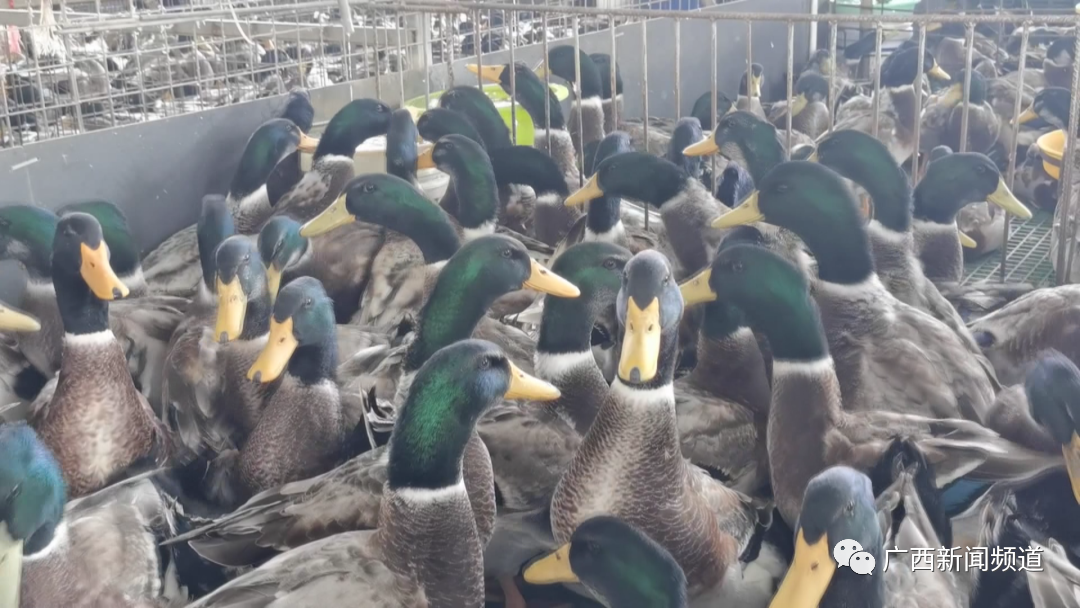 南宁市农工商集团红星鲜活市场有限责任公司副总经理 赵海峰:确保春节供货量,能够满足我们南宁市日常春节期间的禽类供应。按照往年的情况,春节肯定有所增加,我们现在每天的交易量进货量也就是8万~9万羽这样子,特别是临近春节这段时间会有所增加,高峰可能会达到12万羽,总共是三类:鸡、鸭、鹅合起来达这个数。