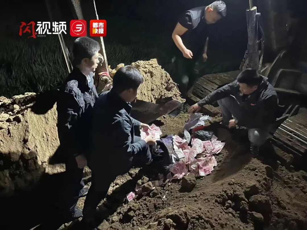 西安公安雁塔分局曲江派出所副所长 王凯朋:“嫌疑人余某交代,他们家旁边有一条路,当时正在修下水管道,他在下水管道下边挖了3米深,把钱放了进去,盖上土,后来下水管道修好了,他就在路面留了一个标记,还在墙上摆了一根线,以便以后能找到埋钱的地方。 ”