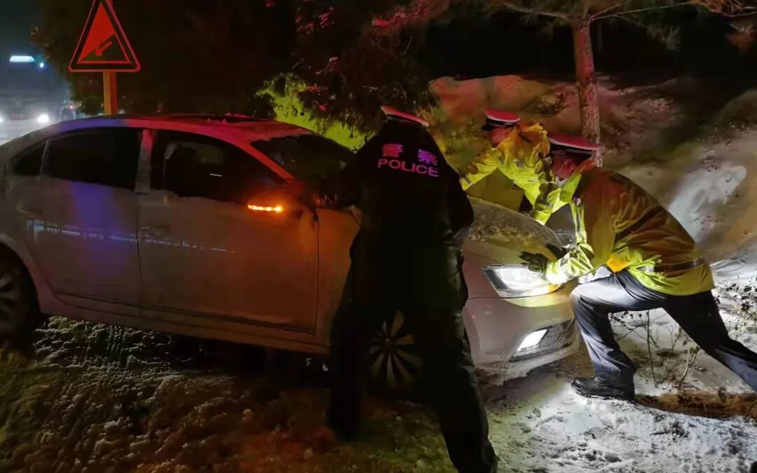 其中,有一起求助报警的是一辆120急救车,车上有一名90岁的病人,因道路坡陡加上积雪无法通行。22时09分,民警到达现场开始救援工作,协力将救护车推上了坡,在各单位的积极配合下,22时35分该路段通车,所有求助车辆全部顺利通过。