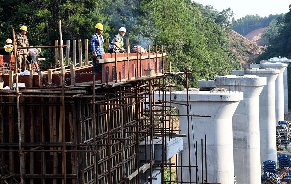 雄心是力量的来源。“我们只是希望能够在晴朗的天气下多赶点进度,让铁路能按时通车。”在杨嘴源大桥段,五个大桥墩已屹立在山间,几名工人带着黄色或者白色的安全帽在搭满脚手架的第六个桥墩上作业,一壶水、一身黝黑的皮肤是他们的“标配”。