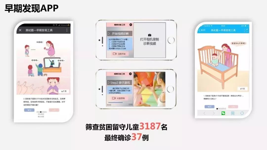 他们招募并培训百名大学生志愿者,使用自身研发的早期发现工具 APP 进行暑期走访筛查,并协助政府、医生、教师等与自闭症儿童家庭对接,这些举措为自闭症家庭、特别是贫困农村家庭提供了真正意义上的“全过程服务”。