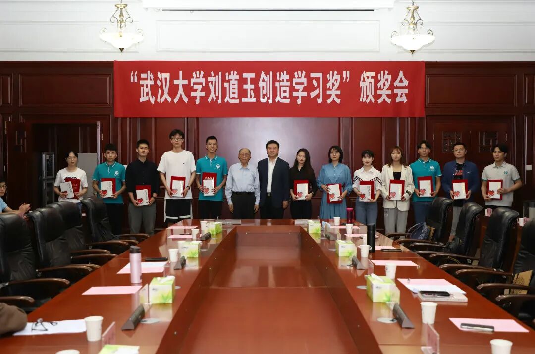▲郑梓阳获“武汉大学刘道玉创造学习奖”(左五)