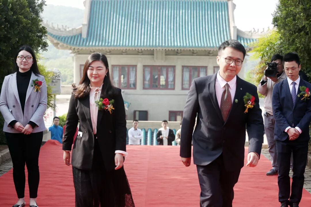 在迎贤礼上,40位引进人才戴上校徽,郑重地走过红红火火的人才通道,与韩进、窦贤康行握手礼,然后拾级而上步入校史馆。引进人才胸前的校徽与飞檐斗拱交相辉映,珞珈人才方阵喜添劲旅。