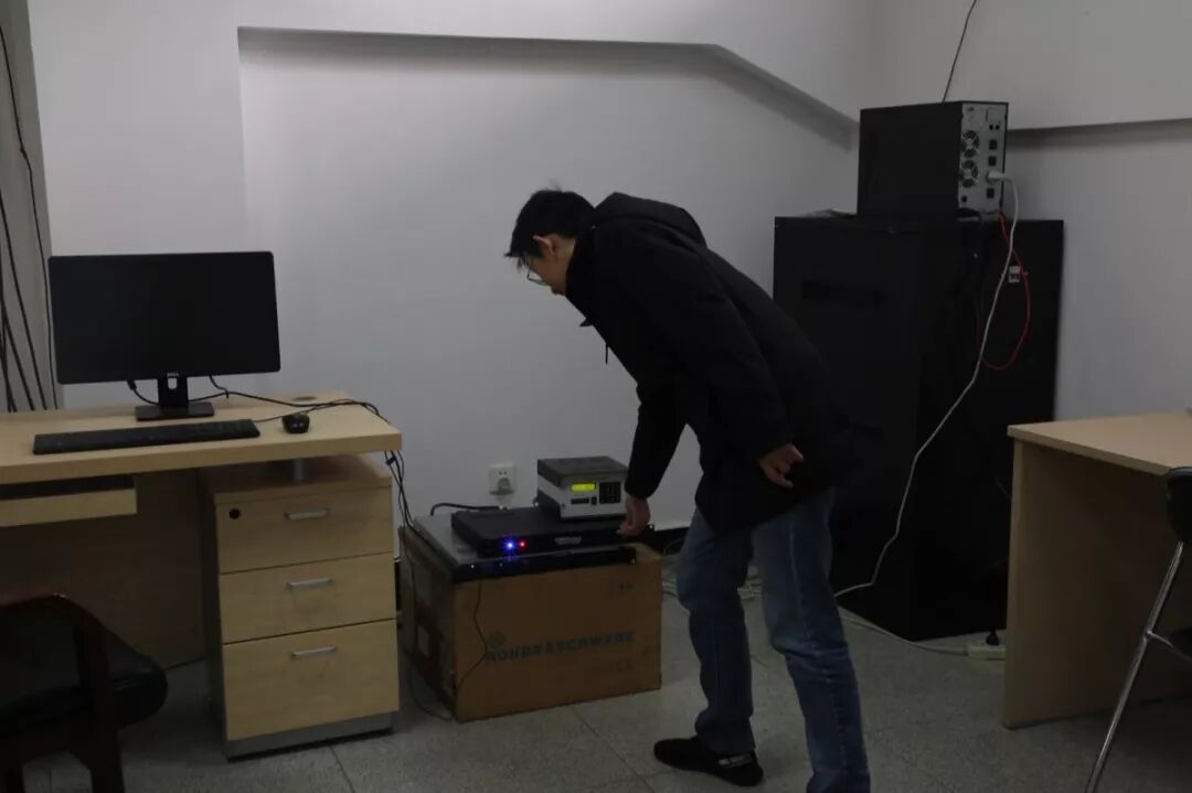 大约7点45分,我们来到了地面站园区。尽管前一天晚上付晶老师值班到很晚,但在我们到达时,他已经开启了机器设备并完成了一些准备工作。新的一天就这样开始,偌大的机房里此时只有他一人,在各个设备嗡嗡作响的声音中,面对屏幕信号高高低低的跳跃,检查各项数据,确保卫星正常运转。