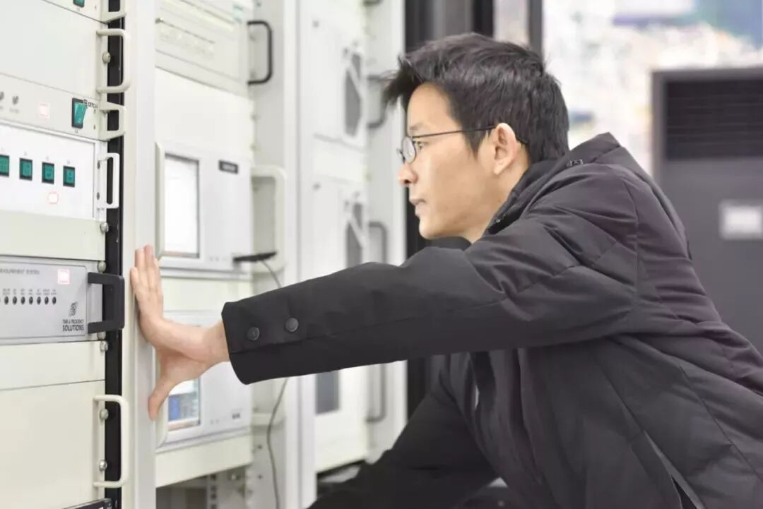 爬上天线的第二层,略陡的楼梯让人都绷紧了心神。天线职责非常重要,所以老师们也时常需要去天线上巡检,确保各项任务都在正常进行。亲历“爬楼”,我们体会到了这个过程的危险与艰辛,但是卫星“保姆”们不辞辛苦,日复一日,默默付出。沈欣老师抬头仰望天线,不自觉地流露出“老父亲”般的笑容,这个倾注着自己心血与努力的家伙,终归没有让自己失望,没有让大家失望。