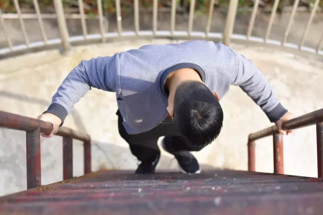 上图:李博士从天线下来 下图:沈欣老师仰望天线
