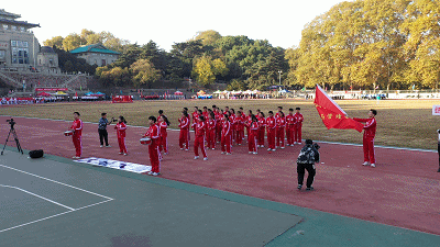 镜头记录下场边同学们助威的呐喊