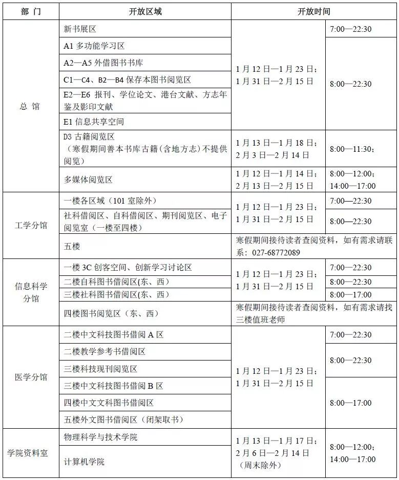 1月15日至2月12日工作时间为:上午8:30—11:30,下午15:00—17:00,2月13日起恢复正常作息时间。
