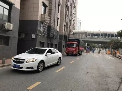 开私家车将货车引导出茶港门。