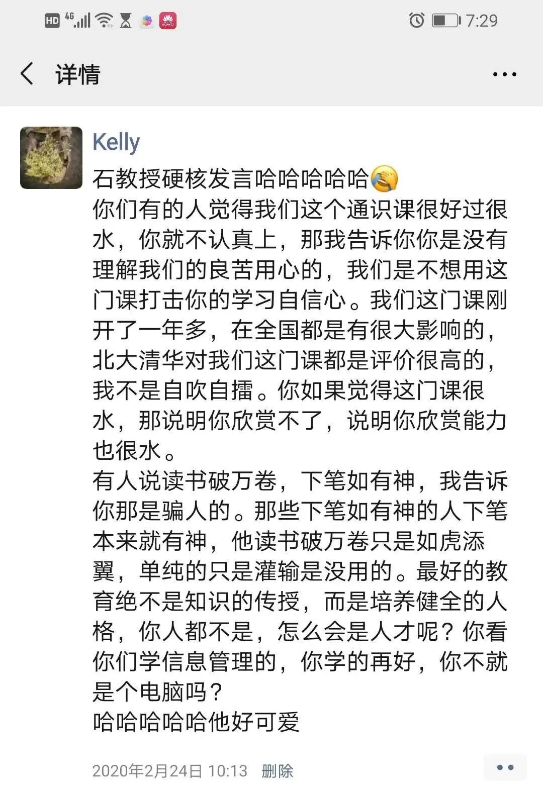 老师除了讲自然科学的发展历程和一些地心说、日心说这些原理知识外,还十分认真地跟我们分享了他对教育的观点,他虽然是物理系的老师,但是特别重视人文教育和学生的人文素养,说话直率犀利,一针见血,金句频出,可以说是耿直boy了哈哈![]()