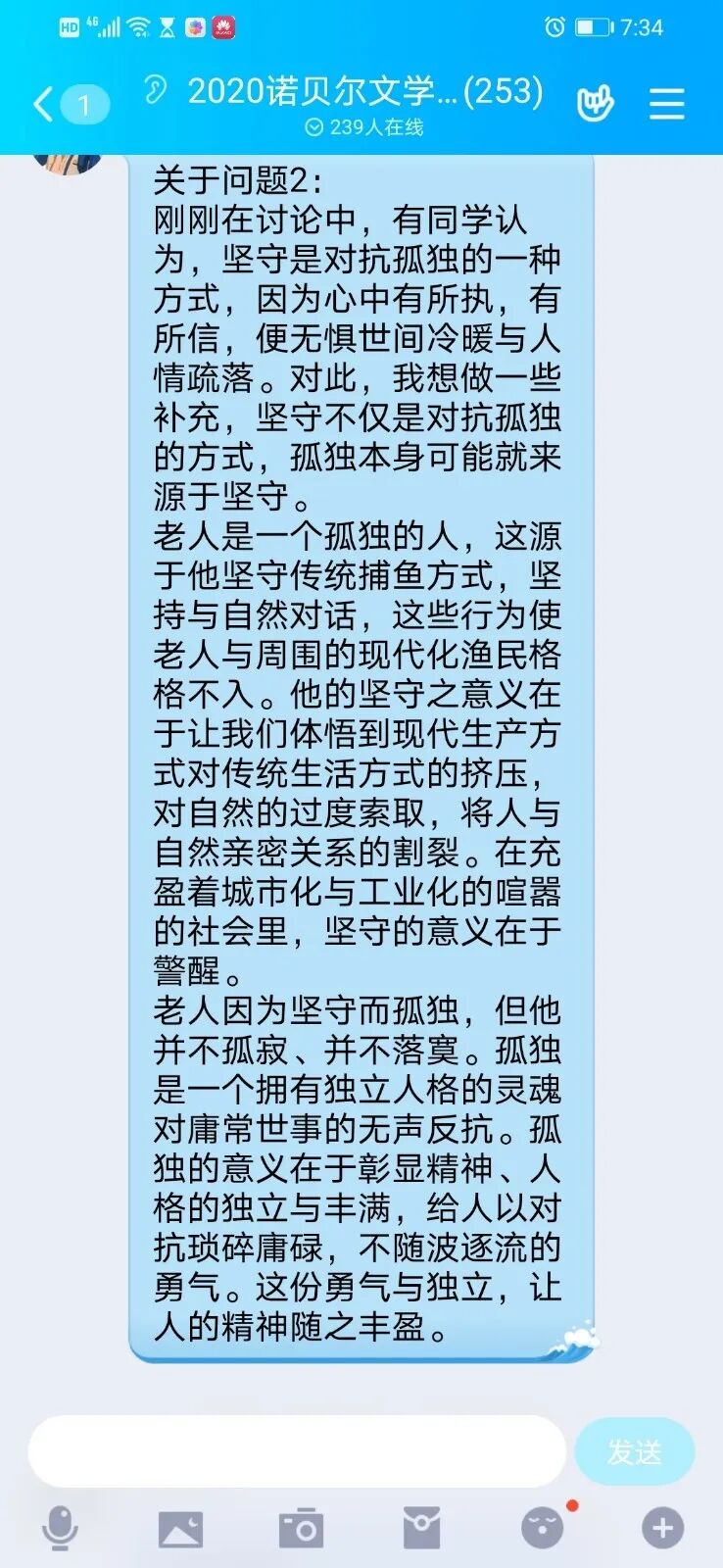 同学们对《老人与海》的讨论