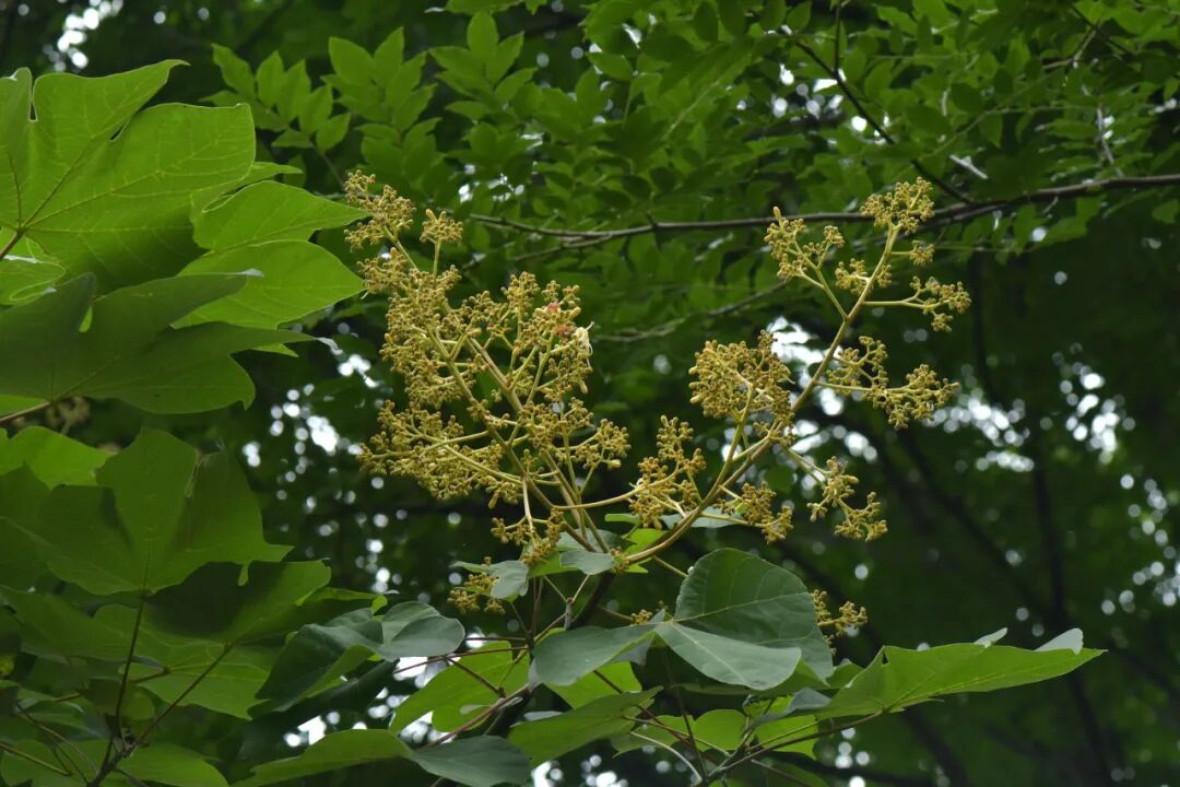 这些悬铃木都以其高大挺拔的姿态受到园林业界的喜爱,是常见的行道树。而传说中引凤来栖的梧桐则是指锦葵科梧桐属的梧桐(Firmiana platanifolia),又叫青皮桐,其花序形态和果实结构都和悬铃木有很大差异,是不会飘絮的。大家一定要分清哦!