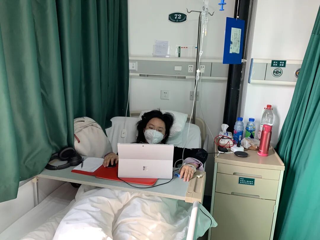 艰辛的备课路上有许多令人感动的事。让桑建平教授印象最深的,是物理学院的祁宁老师生病住院期间,还躺在病床上备课。每当桑老师上最后一堂课,回忆他们的备课经历时,都会给同学们看这张照片,每看一次都会为这种精神、这种境界、这位大学老师的品质而生出感动。