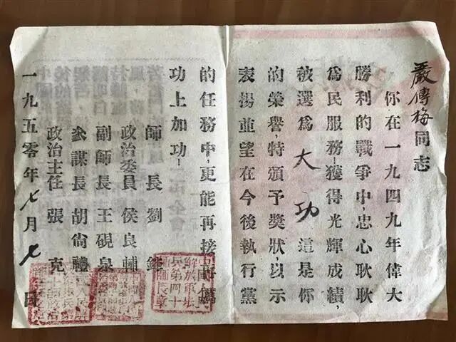 严传梅荣膺特等功,并获得一枚宝贵的“人民功臣”奖章。