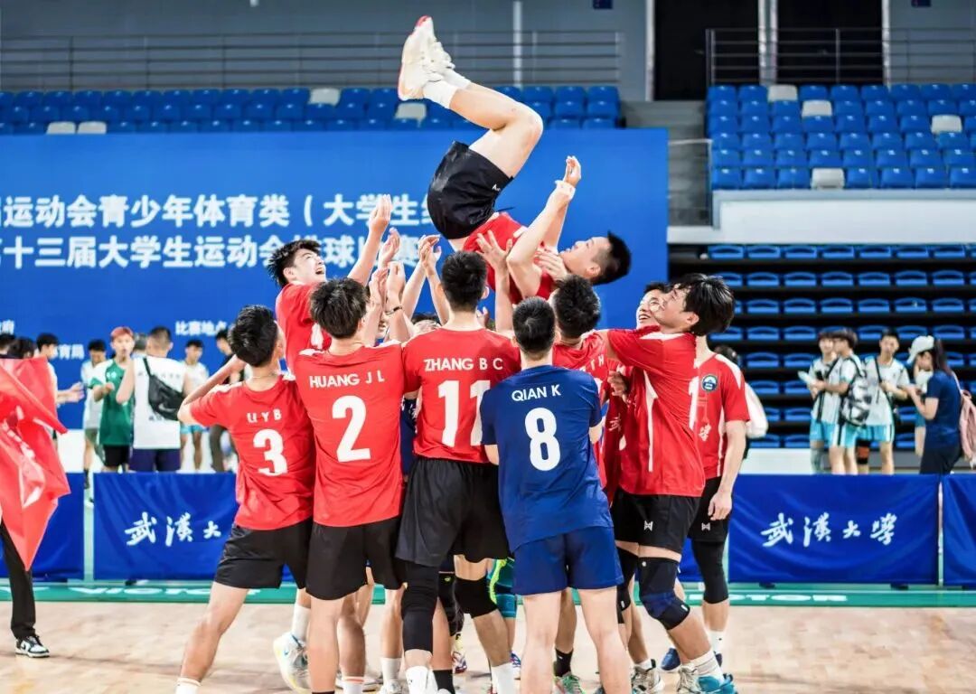 “卷土重来登峰极”,这句话正是对武汉大学阳光男子排球最真实的写照。小组赛拿下第一,淘汰赛突出重围,武汉大学男排凭借强大的凝聚力和战术执行力,并充分发挥网口优势,在主场山呼海啸般的呐喊声中最终以3:0的比分折桂决赛。