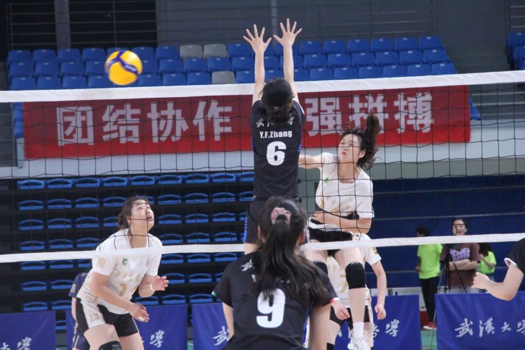 女子甲组排球赛首先鸣哨拉开序幕。武汉大学阳光女子排球队在小组赛中一局未丢,淘汰赛中轻松完胜,半决赛中逆风翻盘,最终在决赛以3:0成功卫冕。女排队员们不畏强手,充分发挥自身技术细腻、串联出色等优势,利用发球带动拦防,凭借出色的实力,蝉联湖北省大学生排球比赛冠军。