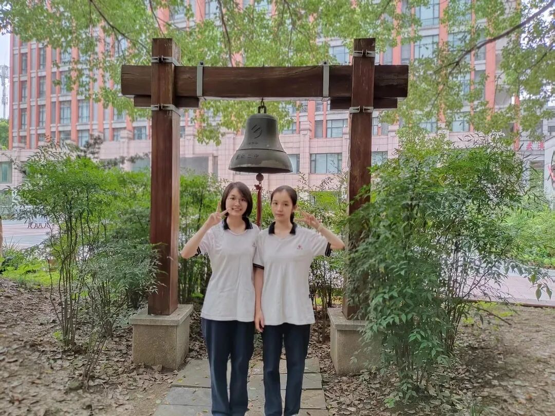 朱闰琳、朱闰琅姐妹俩的名字取自成语“琳琅满目”,“琳”与“琅”皆为美玉,寄托着家人对她们的美好祝愿,她们平时也会互称对方”琳“和”琅“。三年前,她们俩一起考入武汉二中;今年,姐妹俩仅一分之差,即将从江北来到江南,姐姐朱闰琳630分,妹妹朱闰琅631分,同时被武汉大学临床医学专业(八年制)录取,这对双生姐妹花将在珞珈山继续携手同行。