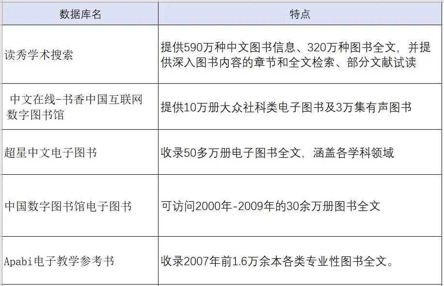 内含本科生常用数据库概览