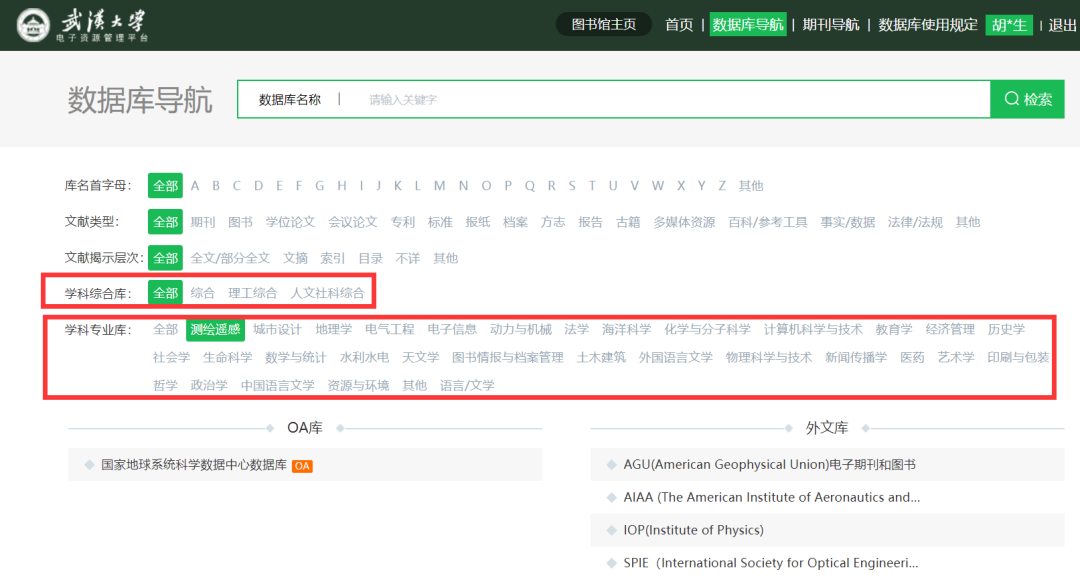 ▲测绘遥感学科的专业数据库