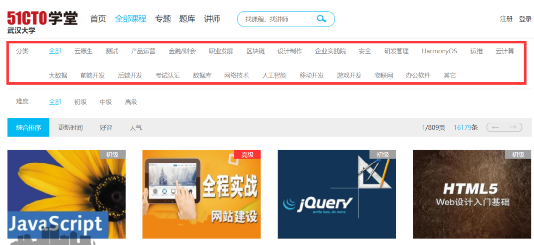 ▲51CTO数据库中的部分技能学习课程