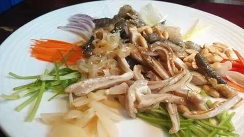 鱼唇则是头部和嘴边最肥厚的鱼皮了。擅长做大菜的福建人比广东人更喜欢料理它。在福州老字号聚春园里,鱼唇除了凉拌之外,最常见的做法就是加入佛跳墙里。久炖之下,鱼唇变得软糯无比,佛跳墙浓到挂住碗壁的汤汁,也是它的杰作。