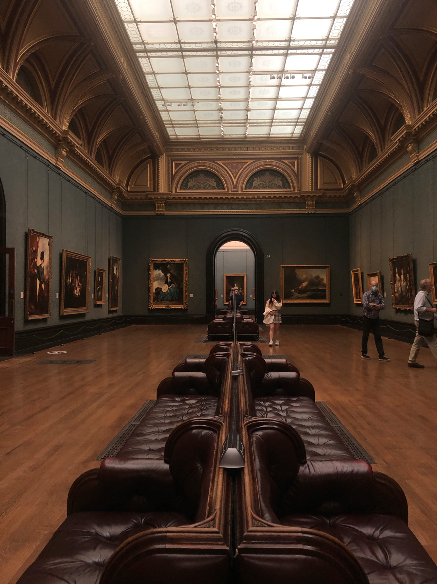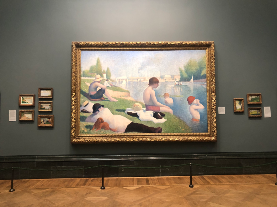 National Gallery是我疫情结束后走进的第一个美术馆,提前一周预约,穿上最舒适的鞋子,带着口罩,准备了足够的耐心郑重其事地逛了一天。和平时相比,刚刚复工的National Gallery的观众少了很多,即使镇馆之宝前面也没有很多观众,反倒有机会能仔仔细细地去观察一幅画的细节,是很奢侈的体验。有很多新的发现,比如发现修拉《安涅尔浴场》右下角小男孩帽子上的点彩。