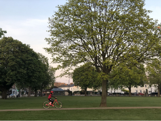 在中国就很喜欢写作课的她说:这些作文题太好玩了,就开始刷刷动笔。每篇作文发给老师后,都得到了很好的反馈,比方说诗歌的押韵很棒,整体叙事流利,或者很好地描绘了一个场景,带入主题。老师也提出修改意见,比方说需要抓住更多的细节,比方说你写了袜子,袜子是什么颜色,或者需要分更多段落,或者在文章末尾加一些小提示,社区来了陌生人,应该如何应对等。一开始对孩子学业的担心,随着共同完成学校布置的项目类的作业,慢慢放松下来。孩子几乎每周都会收到老师发来的优秀作业的奖章,孩子收到后雀跃不已。封城期间,英国在抗疫准备不足的问题慢慢浮现出来,从医疗防护服的短缺,到重症病房、呼吸机和检测工业的薄弱,挑战不小。但是,民众间的团结和互助也日益彰显光芒,一位二战老兵(Tom Moore)在后院扶着支撑物艰难行走,为国民医疗募捐,得到空前响应。渐渐地,英国靠企业和研究机构的合力研制出了呼吸机,展览中心改建的南丁格尔(Nightingale)医院很快落成,抗疫最关键的检测体系也慢慢建立起来,这个国度的脆弱以及坚韧都一览无遗。孩子基本还在无忧无虑的状态。不过有时候,她很想念她的小伙伴们,虽然才到学校去了几周。她也会想念她在上海的伙伴,不知道他们现在在干什么。隔几天,孩子就会问,什么时候我才能回到学校,我太想回去读书,去见小伙伴了。我们能做的只是能把手里稍微富余的一些口罩分享给先生家里的老人们,邻居们和附近的诊所。另外,先生每周都给住在附近的姨妈送菜和药。政府建议70岁以上的老人尽量呆在家里,因为这个病毒对于有基础疾病老年人的杀伤人更大。我们希望如蝴蝶翅膀般小小的力量,为这个国家早日走出疫情的阴影尽到微薄之力。4月英国迎来了疫情的高峰期,我们并没有预料到英国的疫情数据比意大利还高。4月12日,英国单日感染人数达到了8719人。那个月里,感觉每天坐在过山车,只能无奈地等待着它的自由落体。每次外出购物,先生戴起了口罩。很长一段时间,口罩并没有在英国得到科学专家们的认可,在超市里戴口罩的人并不多。封城还是起到了控制疫情的积极作用。6月到来时,英国疫情疫情曲线终于下降到较低位。孩子学校来信说,学校会根据政府建议,让最低年龄段学校先回学校。希望在7月底放暑假前,让所有的孩子都回学校。学校认为,能让孩子返回课堂,对他们的心理健康非常有利。几周的网课后,终于收到学校的消息,说孩子所在的4年级孩子也将于6月22日回归学校,在暑假前能在学校度过5周时间。对于返校后的安全问题,学校列了长长的一个清单。总结下来,主要是隔天上学,每个班的人数控制在15位。另外,每天送到学校的时间段严格控制,孩子的接送时间是早上8:30-8:40,下午15:40-15:50。信件要求孩子严格按照要求时间段到校,帮助校方执行社交距离。另外,要求女生把辫子扎起来。不要带自己的书包到校。不需要佩戴口罩,如果在学校发烧,会给孩子提供专门的教室休息,照顾孩子的老师会佩戴口罩。万一出现新冠症状,需要和学校请假。另外,每周的集会活动和出游活动都取消了。万幸的是,学校每天中午的热食供应没有停止。我一度担心,出于卫生安全考虑,学校会要求孩子们带三明治到学校,看来担心是多余的。告诉孩子他们将返校的消息后,孩子非常开心。但是,我们还是有些担心。就算疫情有所控制,英国在6月22日当天新确诊人数是958人。另外,英国在病毒的追踪和隔离上显得生疏,需要时间历练,但是时间意味着疏漏。虽然孩子感染新冠重症的比例非常小,但并没有数据表明孩子不容易感染,也容易传染给家人。犹豫间,还是把孩子的意愿放在了首位。孩子渴望与其他孩子的交流。在她外出骑行的时候,我们发现她特别注意和其他人的距离,相信她在学校也会注意。那就决定回归了。记得当时英国BBC一篇报道说,在英国可以回归的学生群中只有一半的孩子归校。重返学校的第一天,我仔细观察了一下学校设置的社交距离规则。我们到得比较早,还没有到入校时间,于是校长让我们在门口等待,后一位家长和我们隔开了一米左右的距离,地上的小圆点提示我们站立的位置。8:30到了,带着孩子进入学校后,绕操场周围大半周,就到了建筑门口。孩子先用洗手液洗手,然后再进入学校。我再绕操场四分之一周,到出口。这样的设计来看,入口和出口存在一定间距,可以互相保持距离。下午接孩子的口在另外一个大门,地上也有圆点设计,家长们依次站立,老师们看到一位家长,就会叫孩子的名字,孩子们都雀跃地走出学校。女儿告诉我,见到同学们太开心了。虽然,只是看到了一半的同学。他们在学校用尺做了一个社交距离棒,自己在上面美化。她说课间需要拿着这个棒,保持距离。她说,回到学校后最大的感受是需要排队,上厕所、到餐厅吃饭、到其他教室都需要排队,因为他们之间都需要隔着安全距离。另外,体育课和课外兴趣课都取消了。她和班级里的同学都组成了社交泡泡,他们在一起玩,不能和其他班级孩子交叉。我知道并不是所有英国的小学都让孩子们重返课堂,政府鼓励的是小学预备班、一年级和最高年级的孩子,因为他们都在学业过渡期,需要更好地适应。孩子的学校在校长的坚持下,让所有年级的孩子返回学校学习几周,实属幸运,也得益于辖区里相对比较低的感染率。开学几周后,我问校