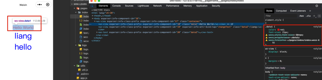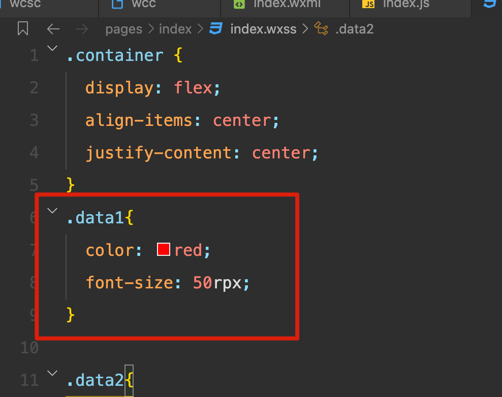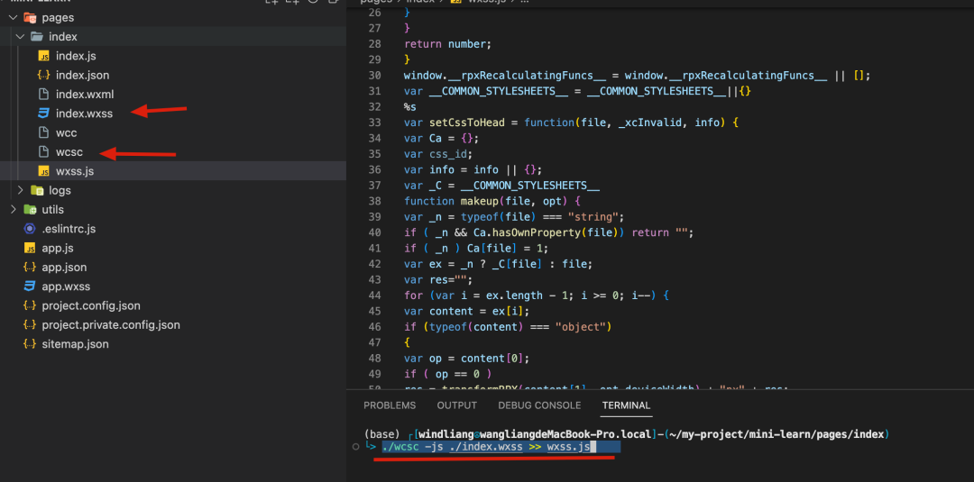 我们把这个 wcsc 文件拷贝到 index.wxss 的所在目录,然后将我们的 wxss 手动编译一下: