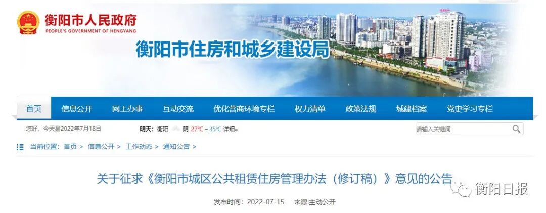 衡阳市住房和城乡建设局发布公告