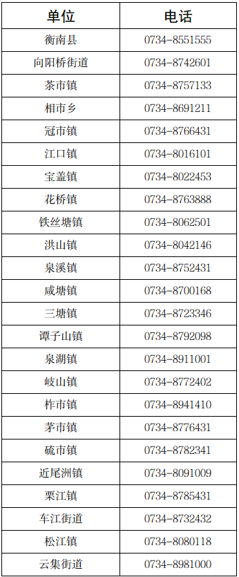 衡山县 | 0734-5812123 | 0734-5812281 |