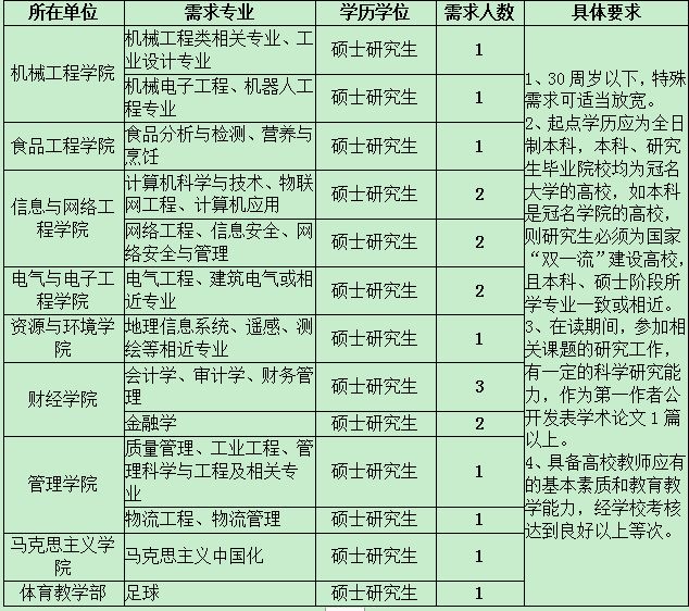 根据学校进人工作安排和学科专业建设需要,现将2019年教学岗位硕士研究生招聘工作有关事宜公布如下。