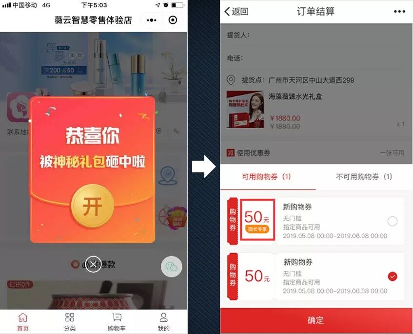 这就是米多智慧零售小程序的“团长免单”功能。消费者现在拼团成功,可以选择送团长券用于下次开团使用,也可以送普通单品券,即拼团成功即可以送一张优惠券,可以马上使用,无需再次开团。