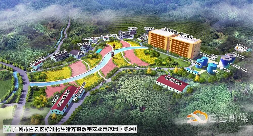 白云区联合广州市金宝生态农业有限公司,建设标准化生猪养殖数字农业示范园项目,将于今年投产。