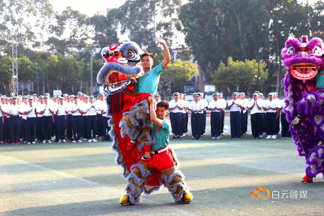 ▲ 广东白云学院龙狮团演练现场