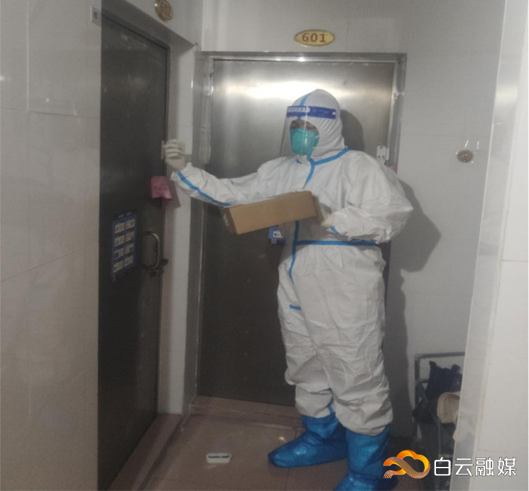 ▲ 积德社区防疫志愿者将物资送到居民的家中