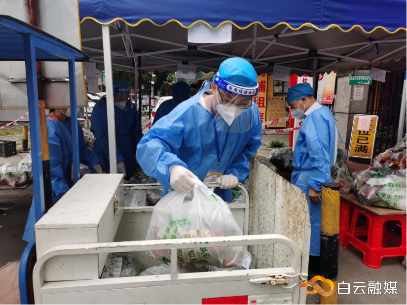 ▲ 云城街一小区业主出资购买肉菜捐赠邻居,其他业主也自发组成志愿服务队上门派送