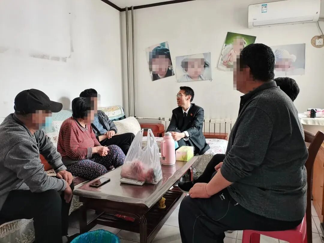 (△深入到当事人家中进行现场走访,听取各方的意见,帮助他们维系亲情)