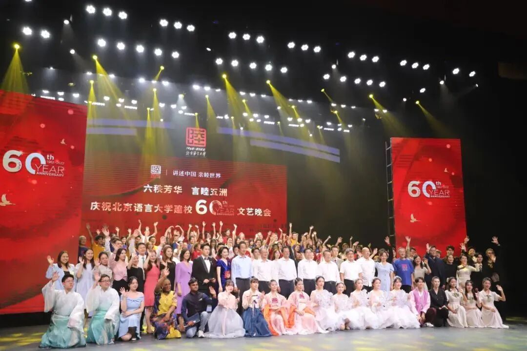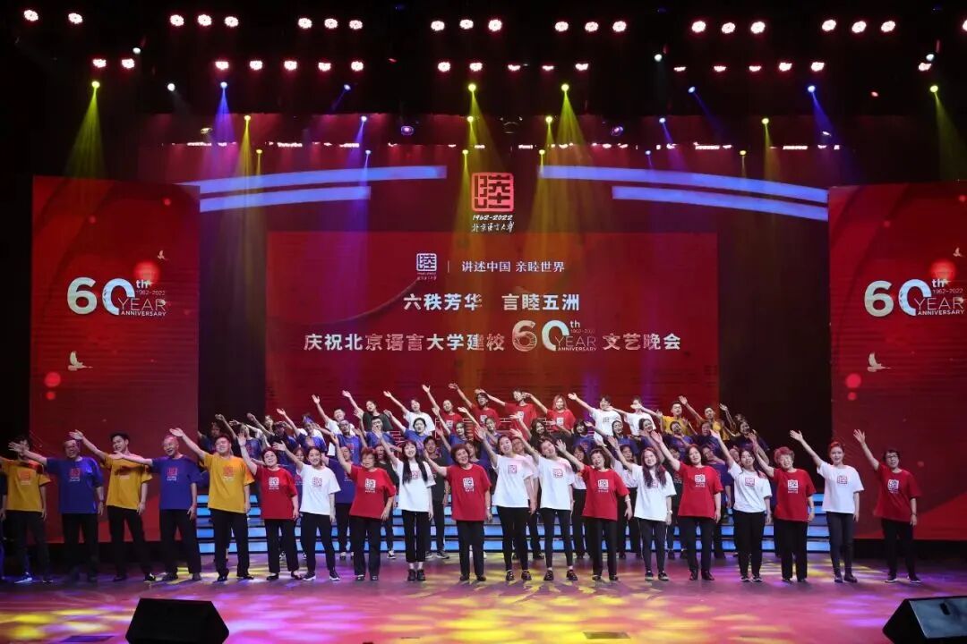 “六秩芳华,言睦五洲”——庆祝北京语言大学建校60周年文艺晚会至此盛大落幕。六十年北语故事,见证了“爱我中华”到“亲睦世界”的绚烂历程。六十载砥砺奋进,讲述了四海情谊与五洲风采。一代代北语人,秉承“德行言语,敦睦天下”的校训精神,展语言文化之翼、扬五洲友谊之帆。佼佼于前,灼灼于后。母校的成就,凝聚了你我的奋发有为;母校的未来,更期待大家的光华绽放。让我们携起手来,共创属于北语的美好未来,砥砺歌行,再谱华章!