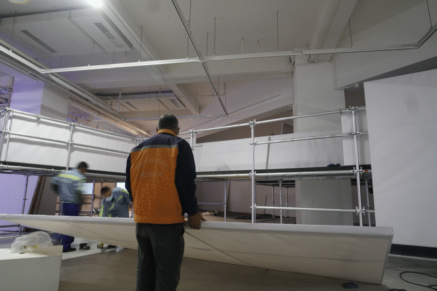 展览设置了一个在展期内持续发展的“论坛装置”——由fabric | ch特别创作,由瑞⼠⽂化基⾦会上海办公室⽀持的巨型观景台式的环境装置《未来过去式平台》。这是一条20米长的步道,颇具考古现场感;而矛盾的是,这个可以俯瞰展厅的平台将入口和出口直接相连。每⼀秒,我们的世界都在产生⼤量数据,“永久”地储存在远程数据中⼼,就好像被封印在千年冰层中的⽓泡⼀样...