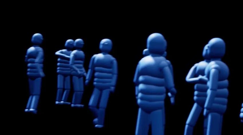 “《阳光下的灾难》探索了我所能想象的最恐怖的未来,即未来将不为人类所控制,而被不具任何情感的AI所控制。虽然表面上看,这是一个反乌托邦的科幻未来,但它本质上描述了一个更为夸张的现实世界:当今我们的生活被一批大型科技公司所控制,它们通过掌握海量数据,试图操纵我们,使得每个个体沦为影像中那些没有脸部特征的小蓝人。”[吴可佳,《对话当红艺术家:乔恩•拉夫曼》,英国《金融时报》中文网]