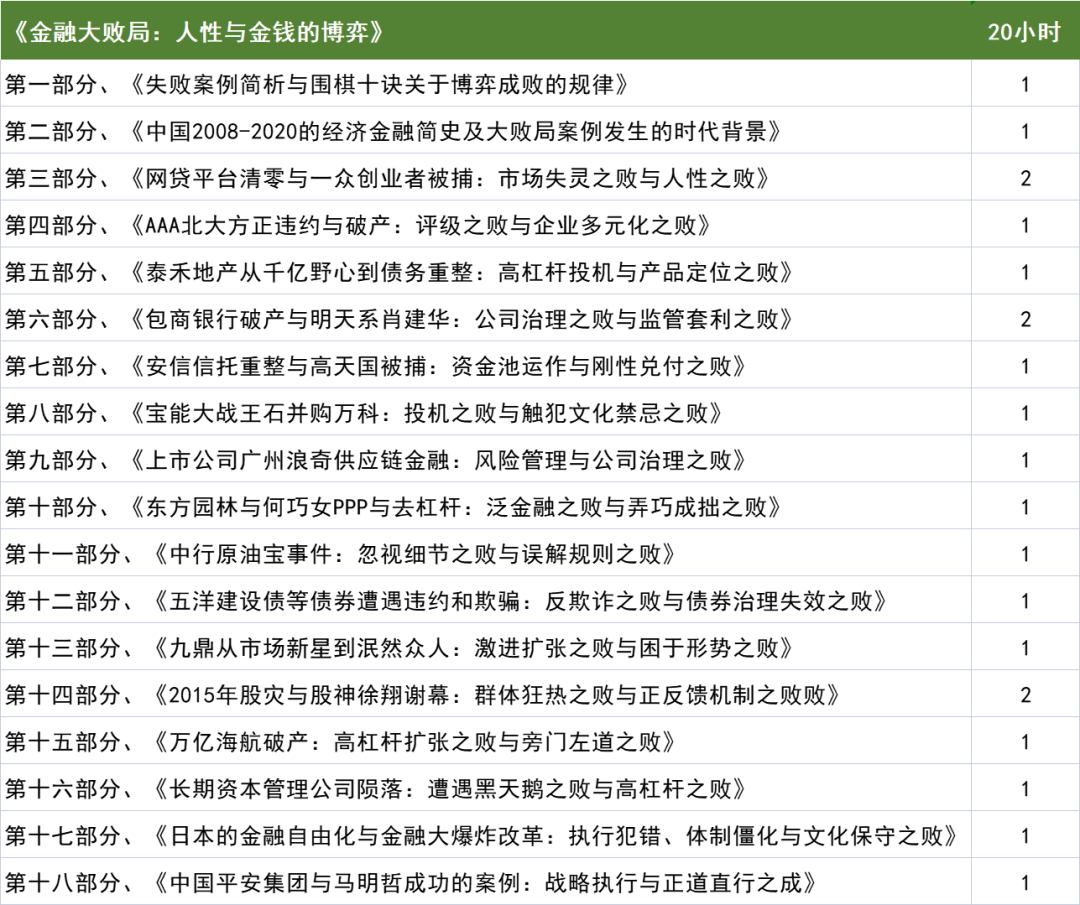 《金融大败局》读书视频,是作者宋光辉基于自已所写的《金融大败局》一书,做成的读书视频产品。每个细分领域的案例讲解2个小时,共19个案例。