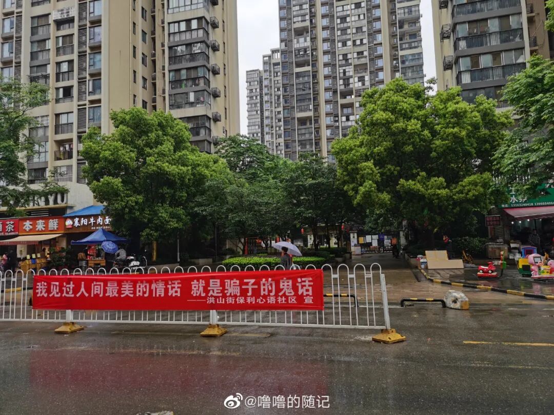 这是武汉一个小区的横幅,挂在了人流量最多的大门处。