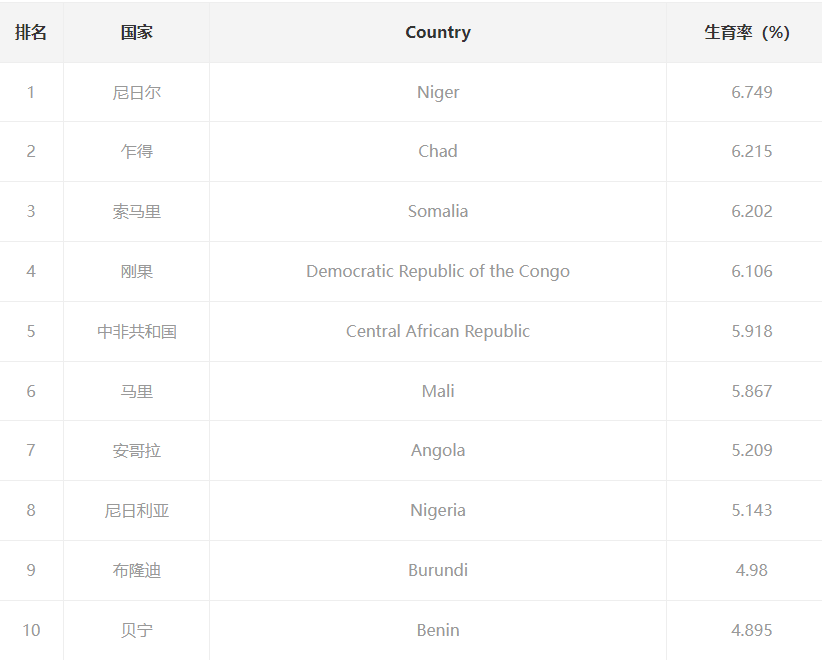但事实上世界生育率排名前十的国家,和世界最穷的十个国家,名单是高度重合的。