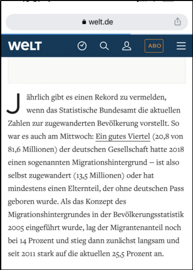 所以十五年前德国只有11%的人有移民背景,现在德国25%以上的人有移民背景。