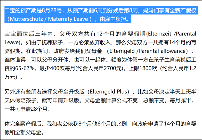 文章采访了移民德国的一些人,这些新移民则详细介绍了德国的生育政策。