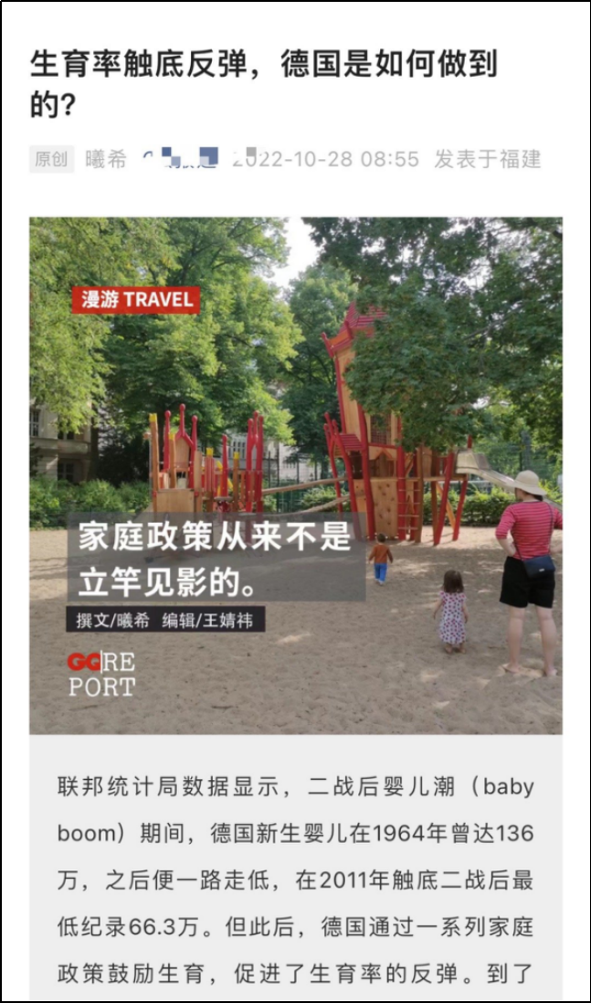 之前看过一篇文章,说德国怎么刺激生育,让生育率触底反弹的。