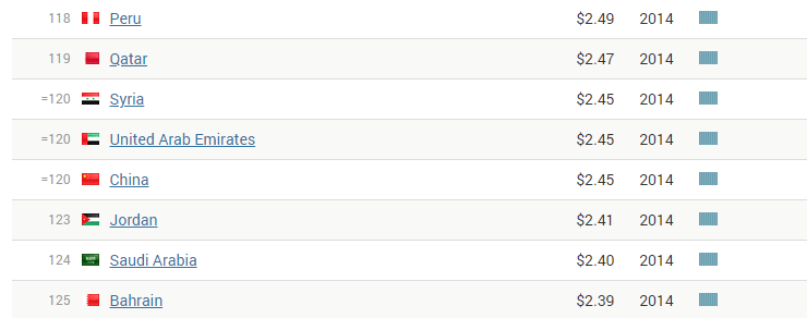 2014年有过一个统计,研究人员从全球180个国家买万宝路,然后根据价格进行排名。中国在这180个国家种排120名,只要2.45美(16人民币左右)金就能买到一盒万宝路。