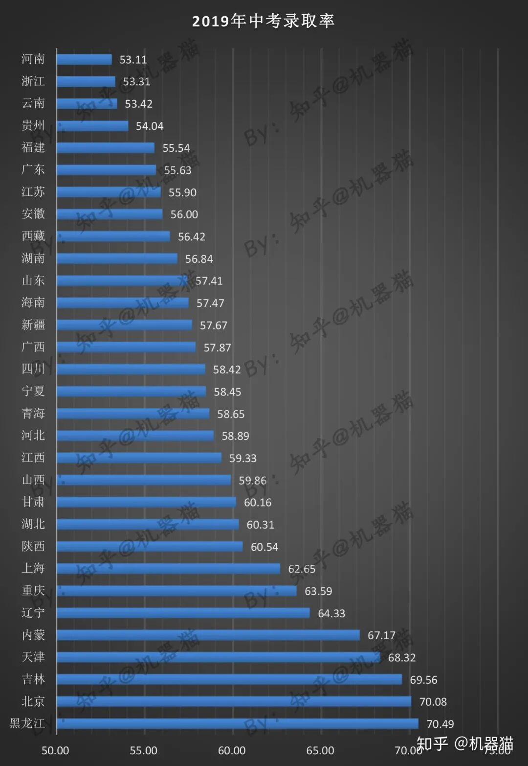 更别说我国高考,根本就不是所有人考一张试卷,然后按照分数高低录取。我国高考,不同地区的高考录取率是不一样的: